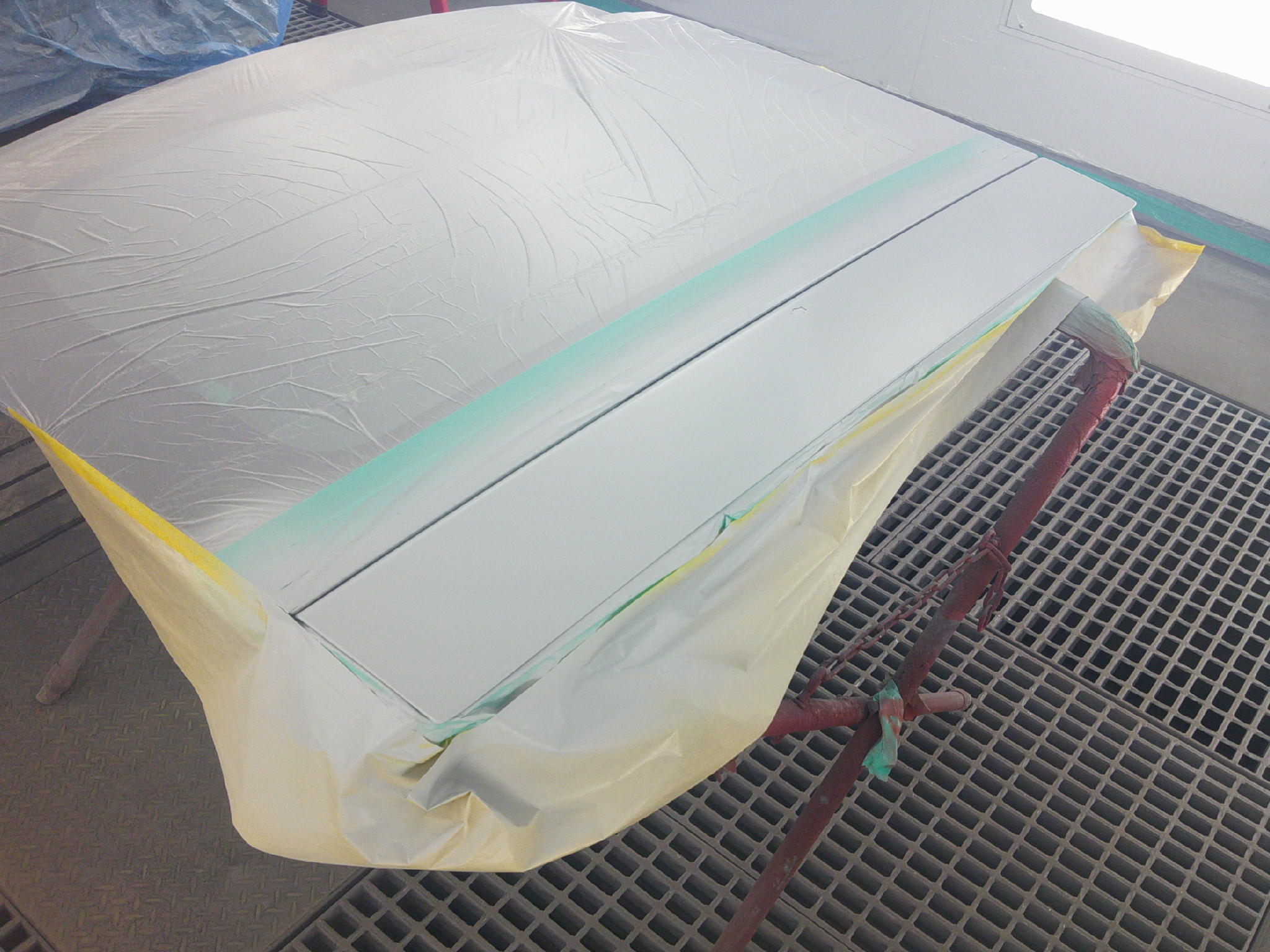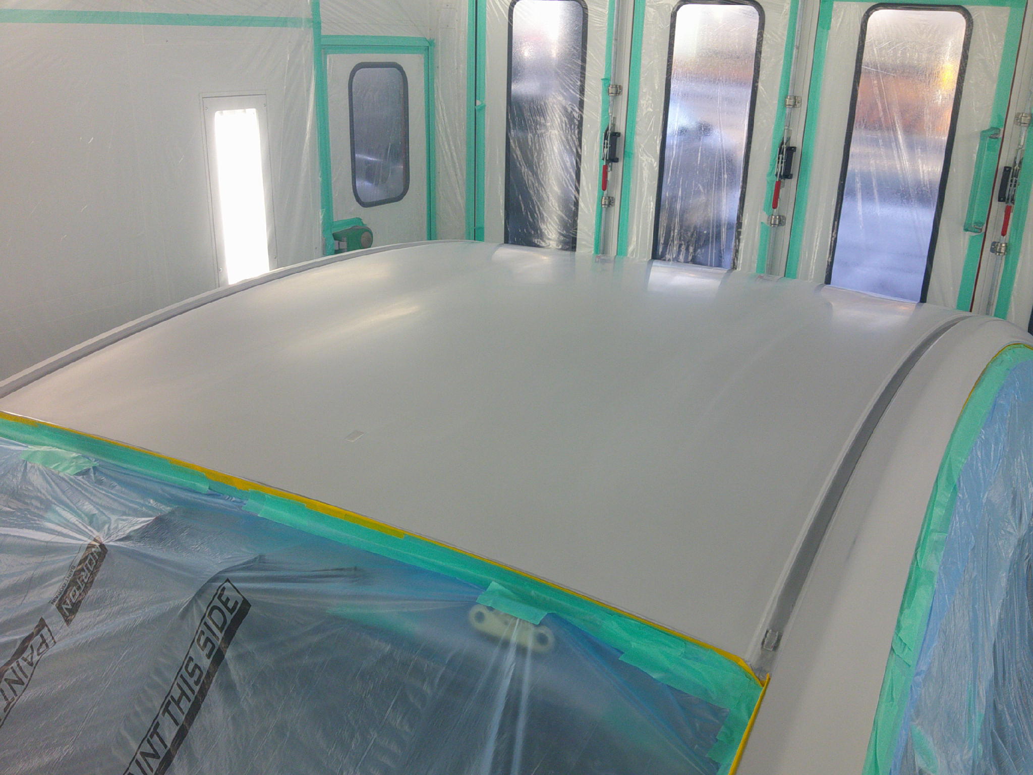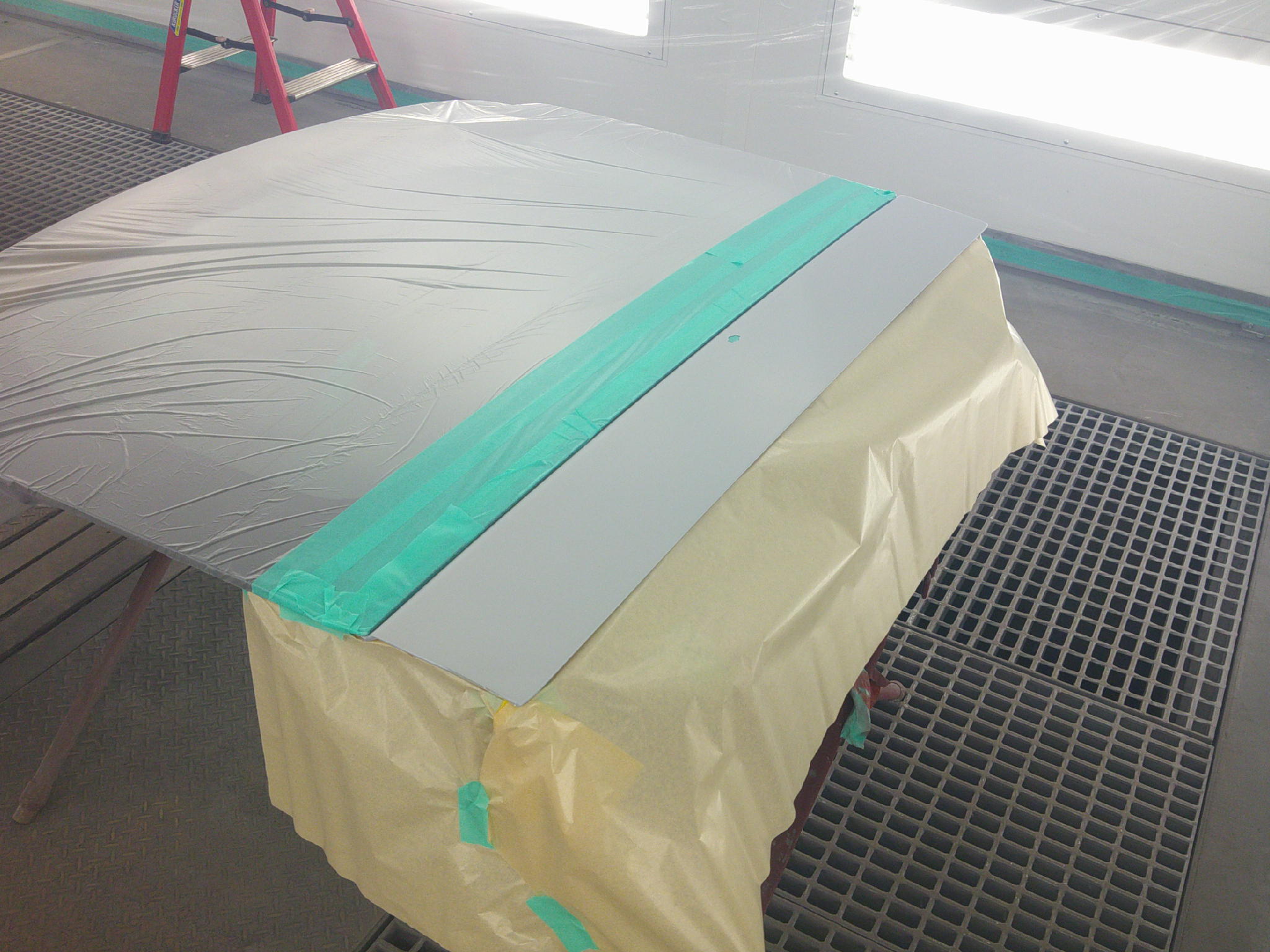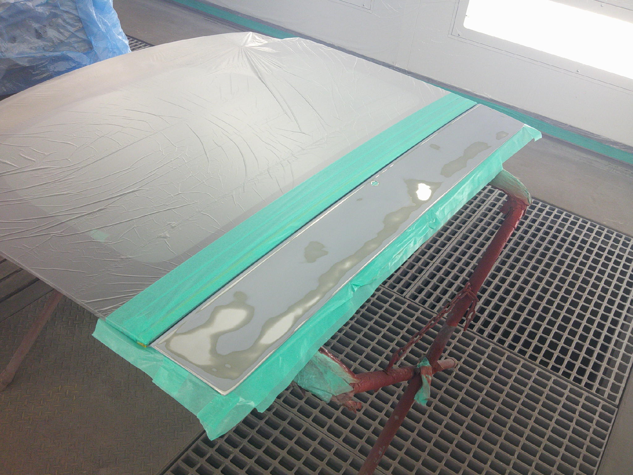 今回のお車は、中古車として購入されたトヨタ30系プリウス。全体的なコンディションは良好でしたが、ルーフ・クオーターパネル・バックドアにかけて、クリア塗装が劣化し、白い斑点が広範囲に出ている状態でした。また、FRバンパーにも大きなヘコミが確認でき、修理よりも交換したほうが仕上がり面で適していると判断しました。