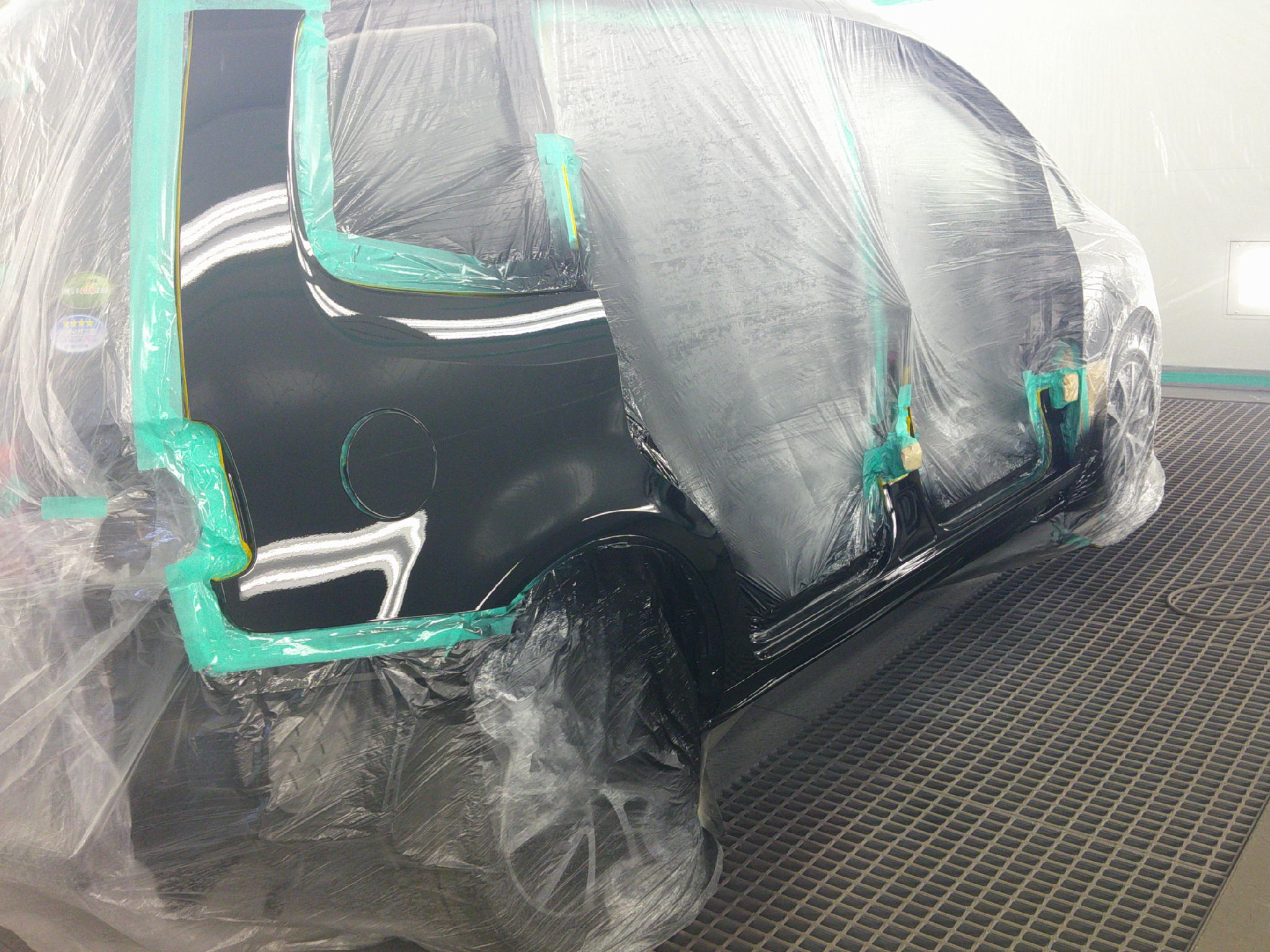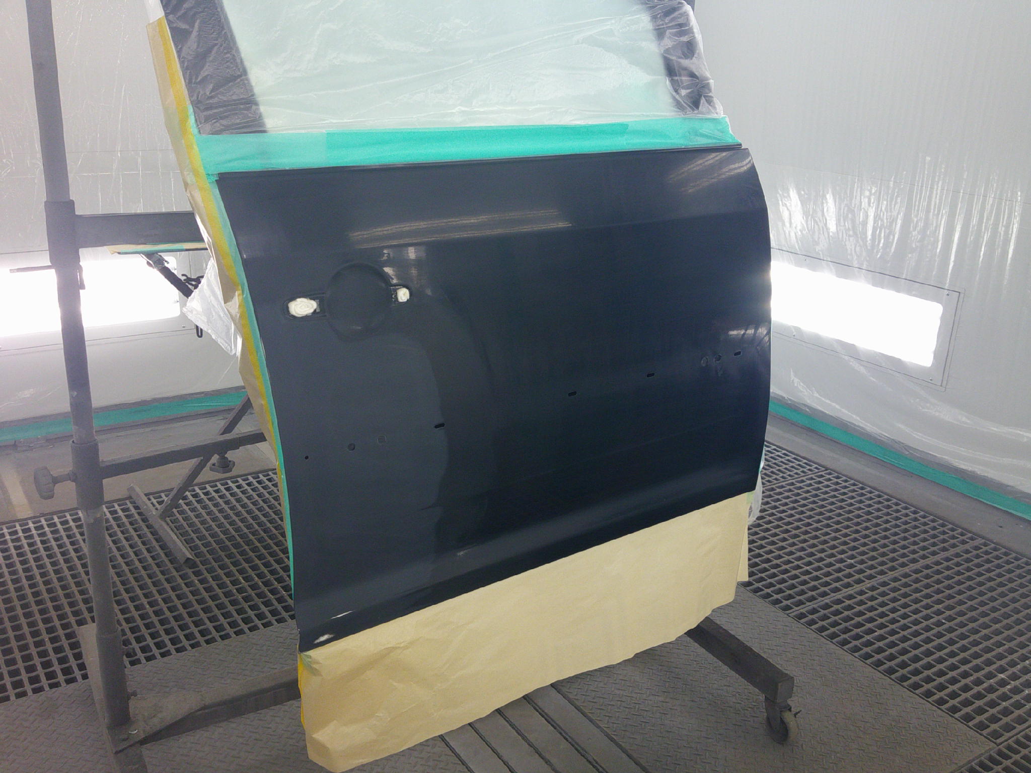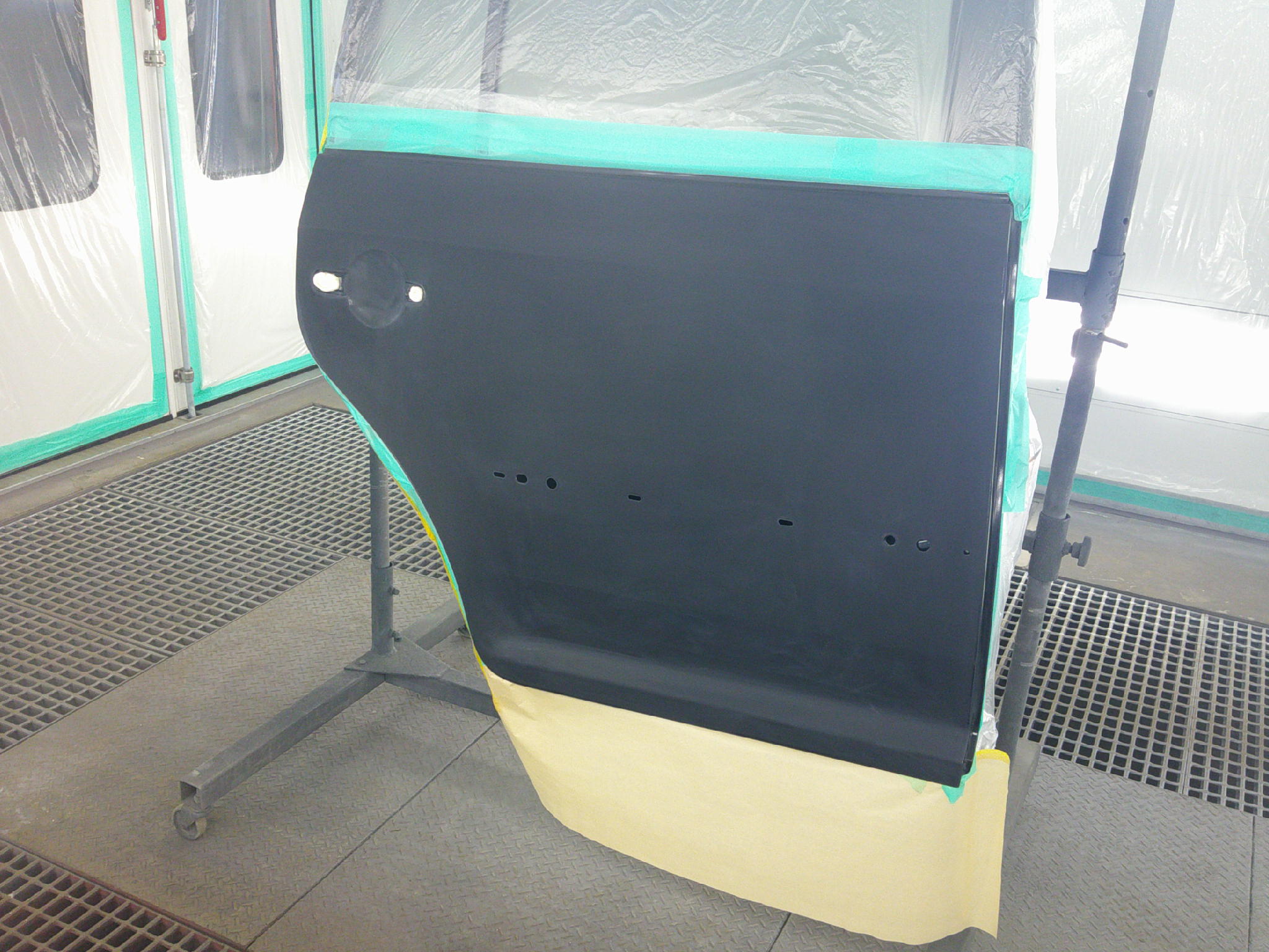 フロントドア、リアドア、ロッカーパネルからクオータパネルにかけて塗装していきます。