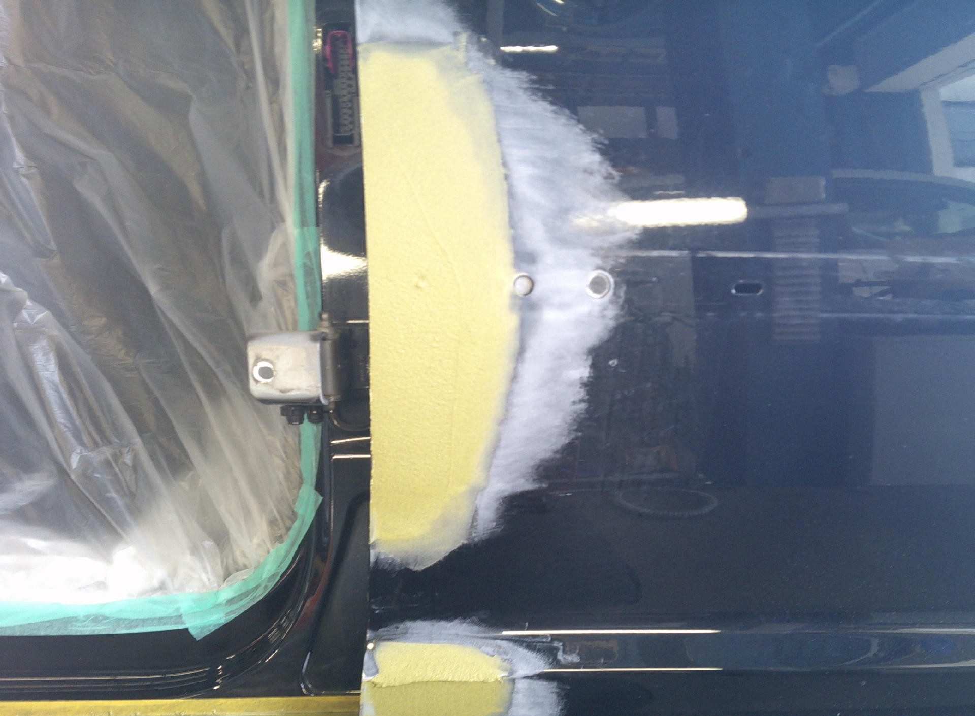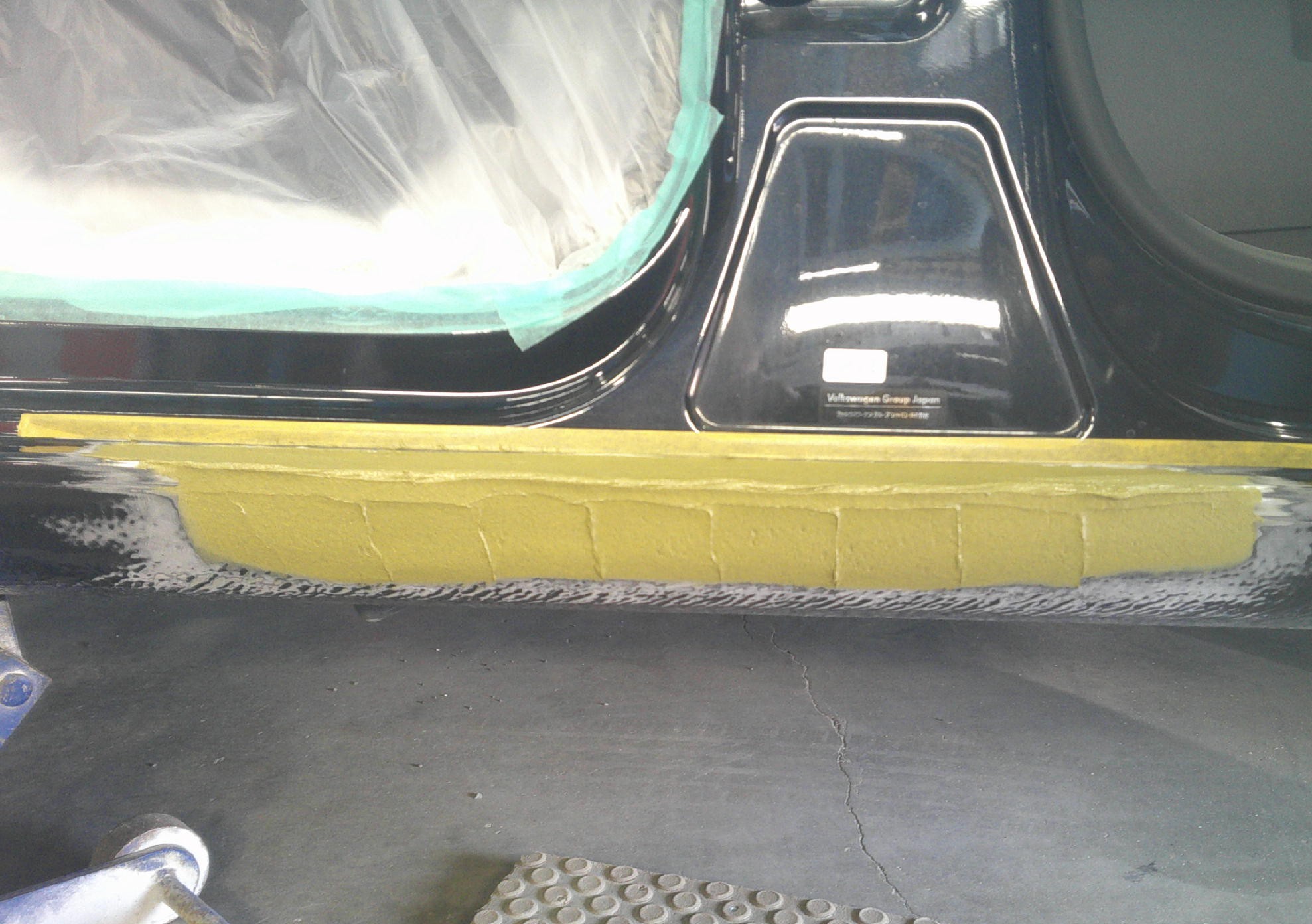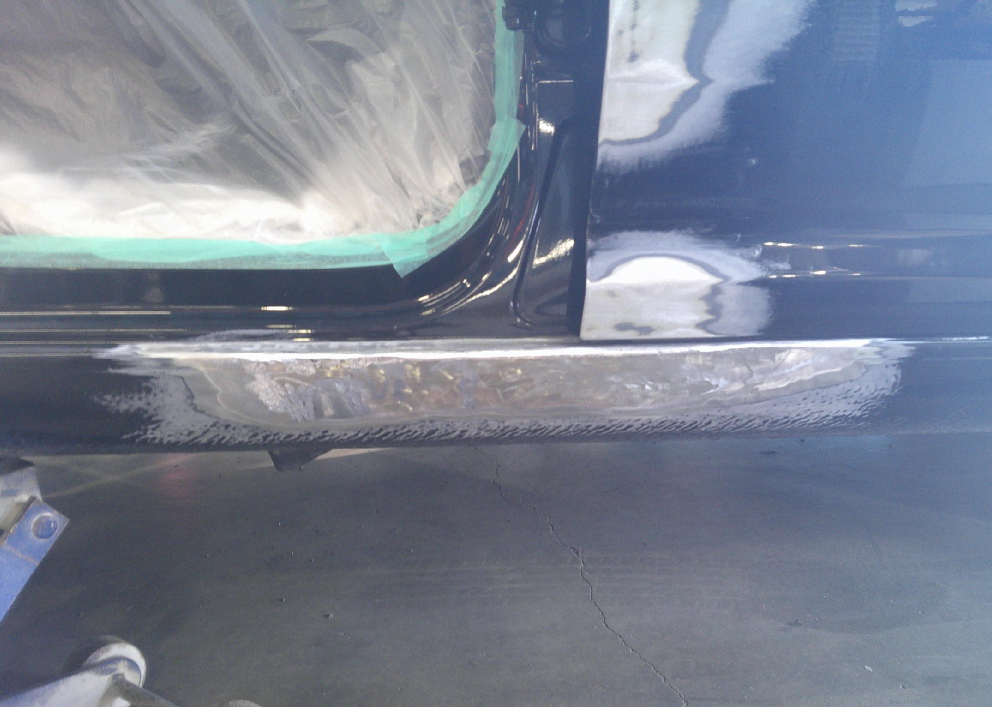 フロントドア、リアドア、ロッカーパネルからクオータパネルにかけて塗装していきます。