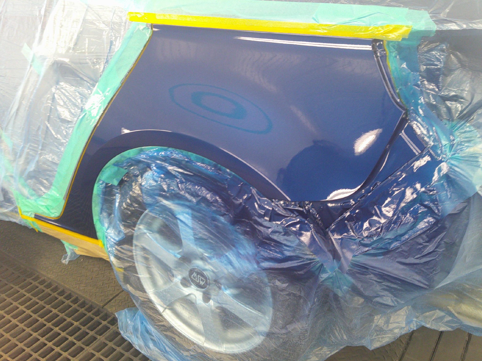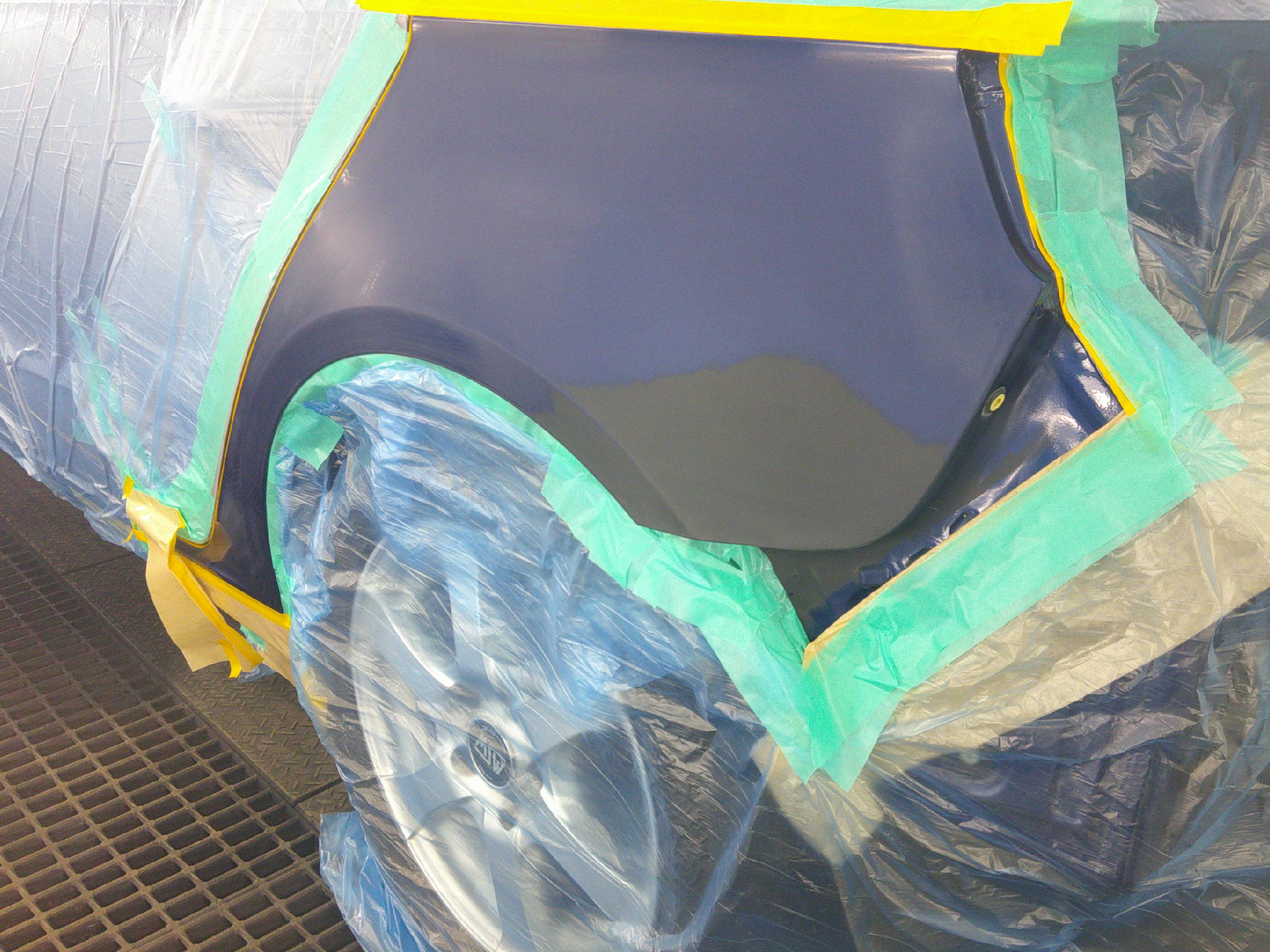 お客様の予算に沿うよう脱着部品を最小限にして部分塗装。ぼかし目が極力目立たないようプレスラインでマスキング。