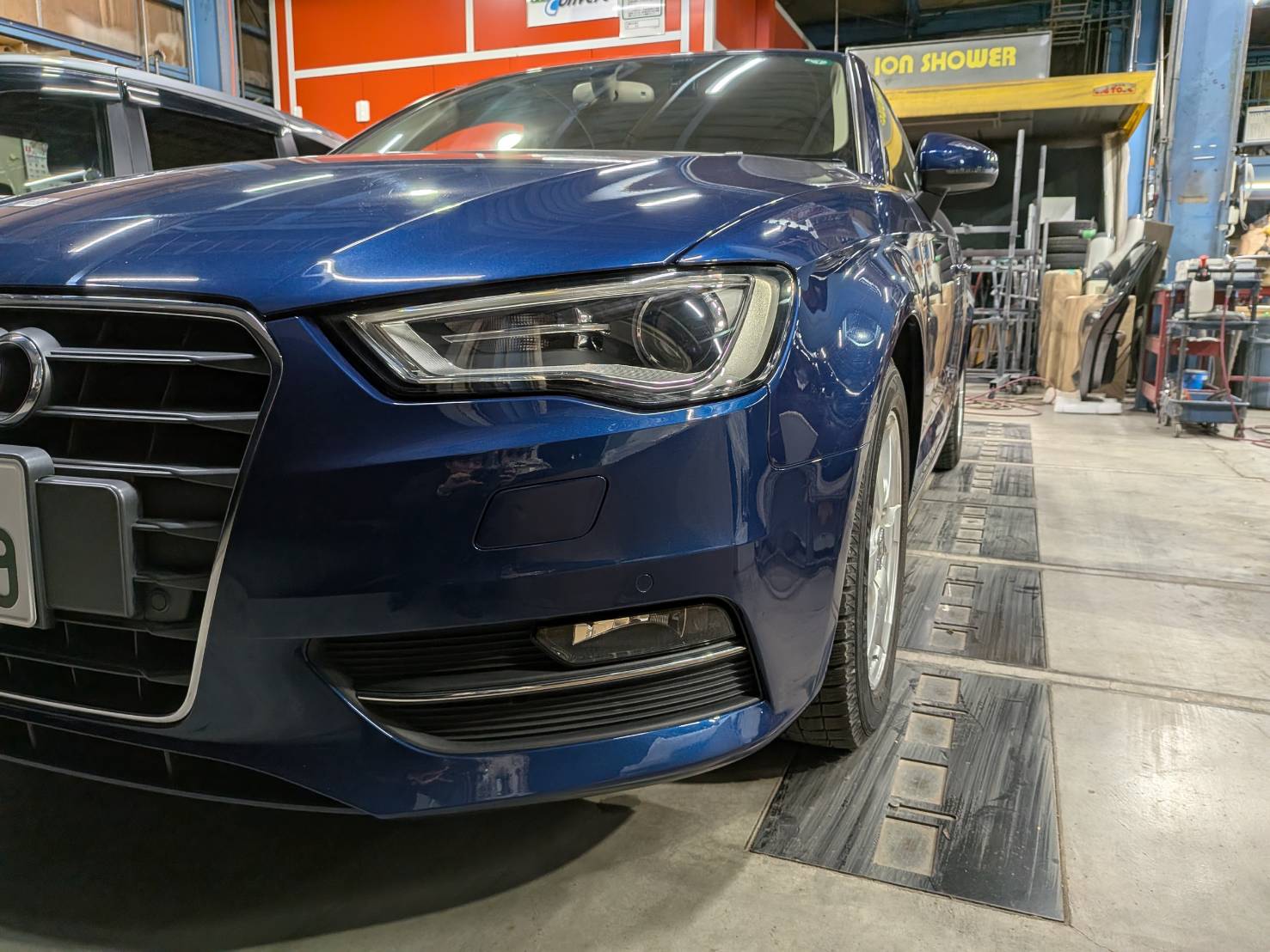 AUDI A3のフロントバンパーキズ修理・左クオーター凹み修理|外装リフレッシュ事例【昭島市】
