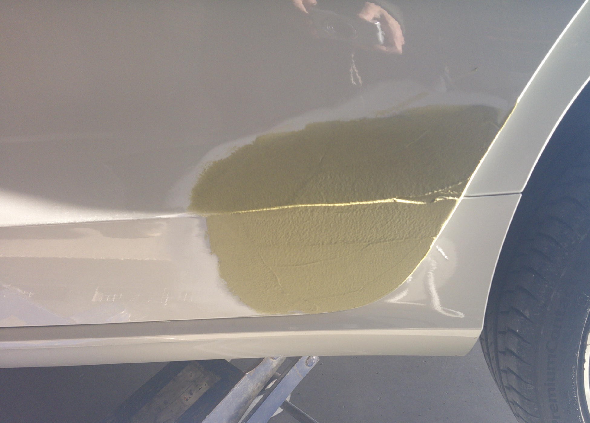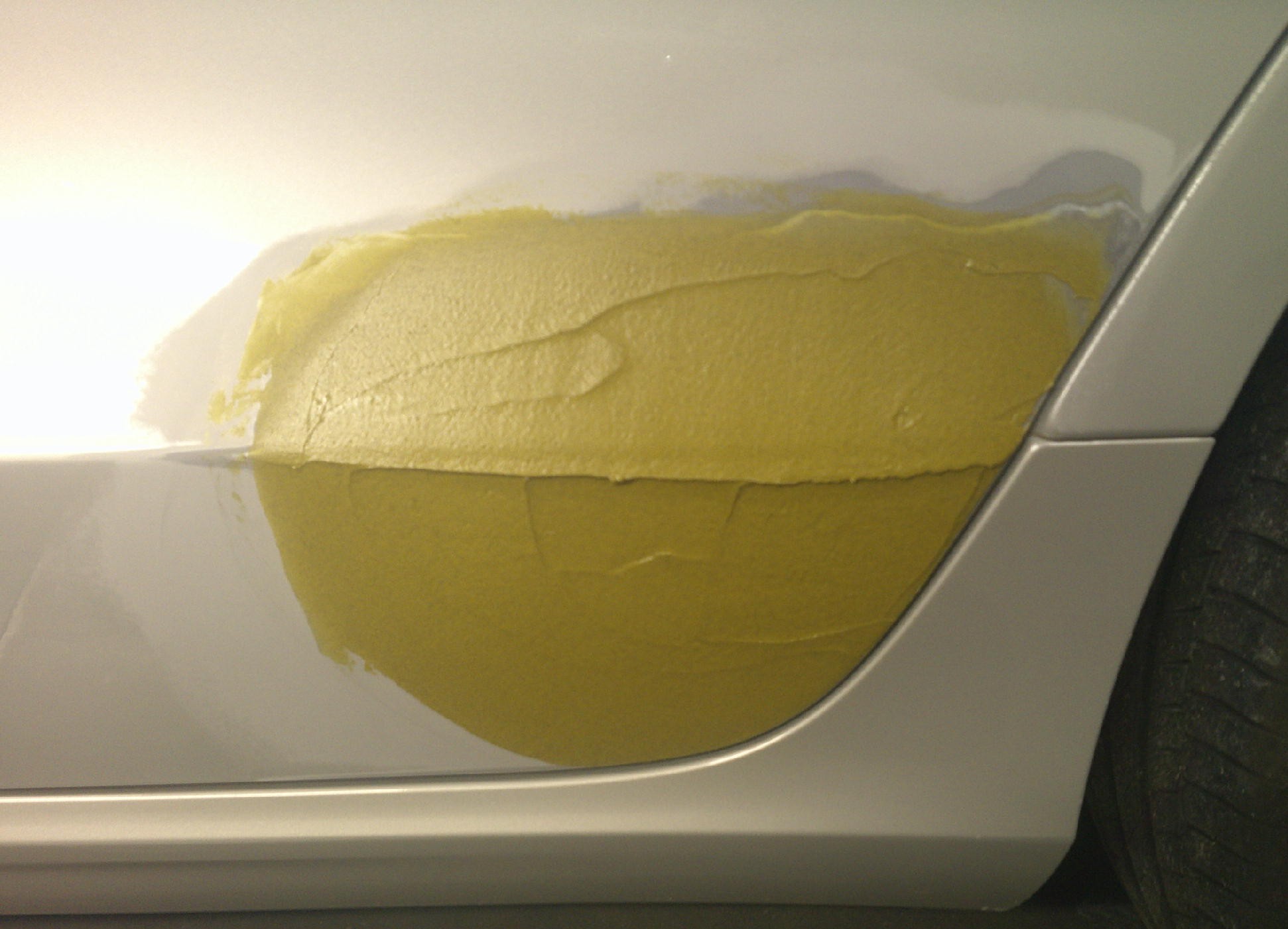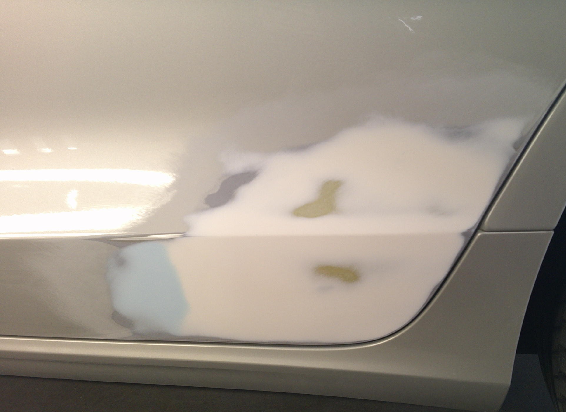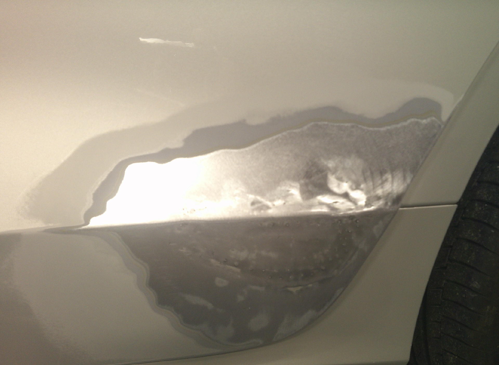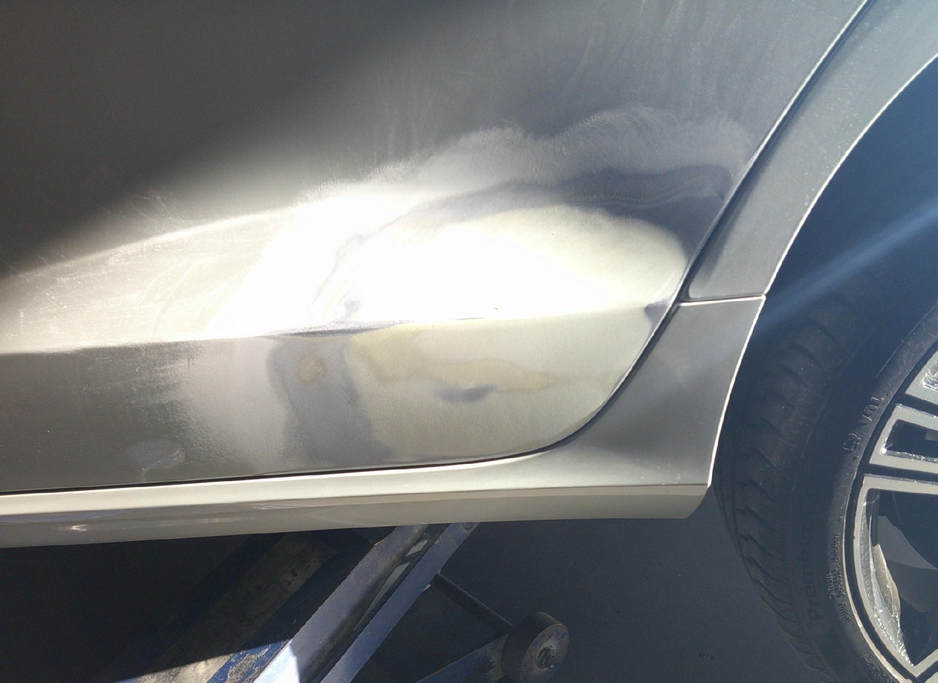 左リアドアの凹みについて、ディーラー様ではドア交換前提のお見積りとなり、費用は80万円を超える内容でした。